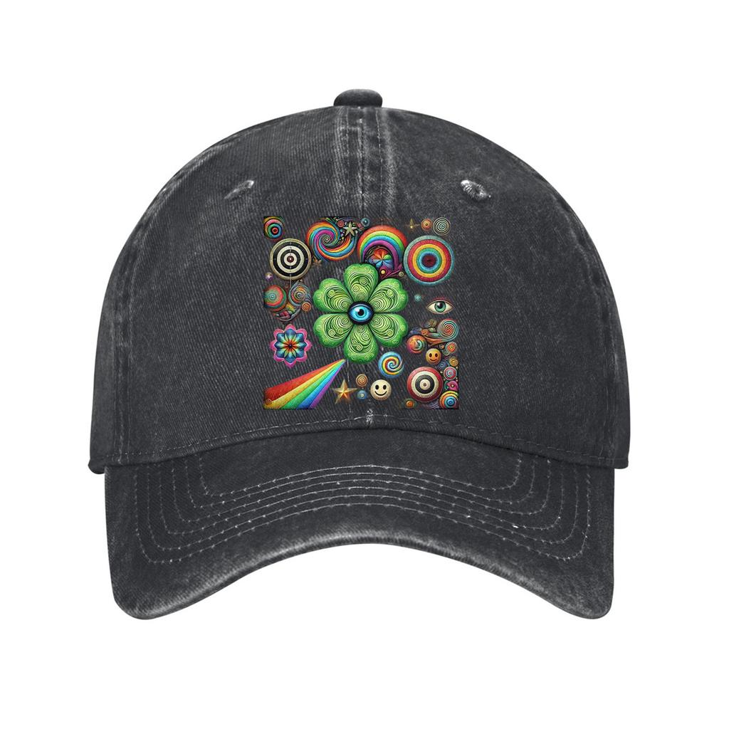 Psychedelic Clover Rainbow Eyes Print Baseball Cap Cotton Casual Adjustable Dad Hat for Men Women