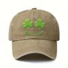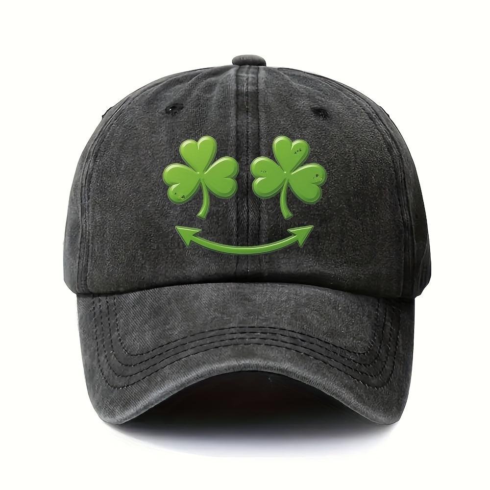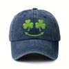 Lucky Clover Smiley Face Baseball Cap Adult Polyester Distressed Casual Sports Adjustable Cap