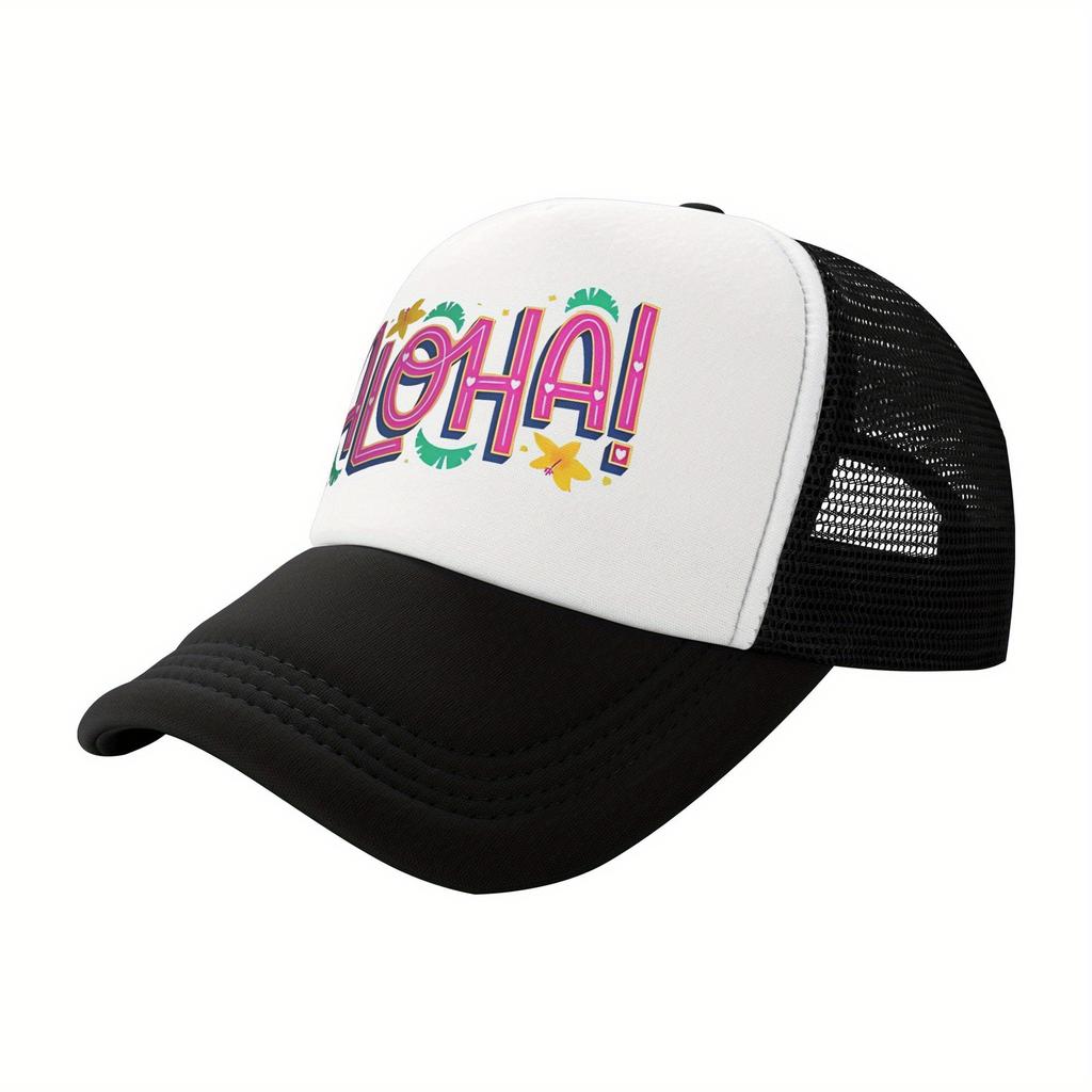 Aloha Print Trucker Hat Polyester Mesh Breathable Casual Sun Protection Baseball Cap for Adults