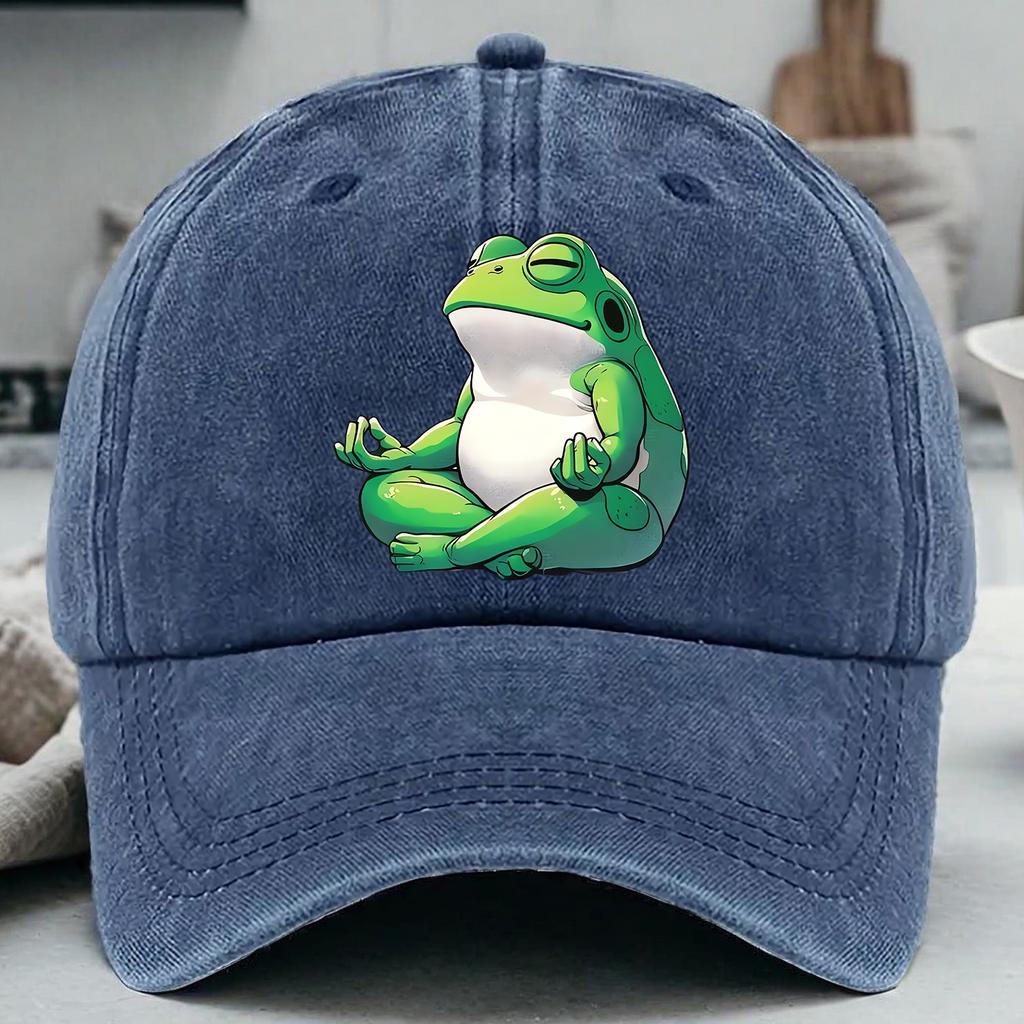 Meditation Frog Baseball Cap Washed Denim Casual Adjustable Unisex Snapback Hat