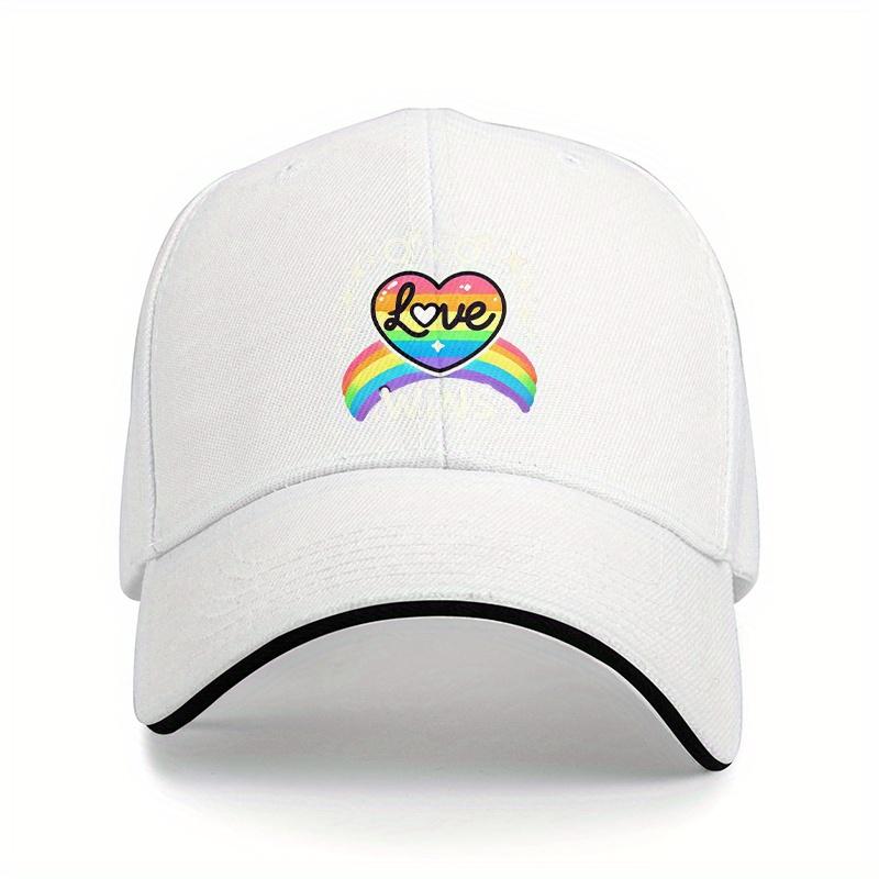 Rainbow Love Heart Pride Baseball Cap Polyester Casual Adjustable Low Profile Cap for Unisex