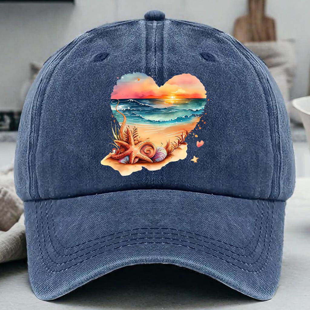 Beach Sunset Heart Print Baseball Cap Polyester Casual Adjustable Unisex Summer Hat