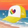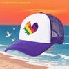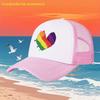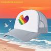 Rainbow Heart Print Breathable Mesh Trucker Hat Adjustable Polyester Casual Baseball Cap for Adults