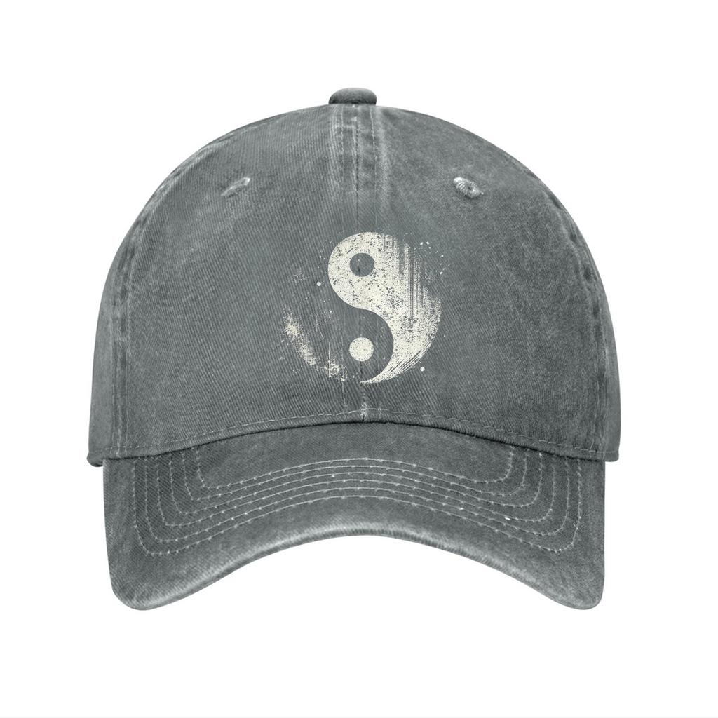 Yin Yang Distressed Baseball Cap Cotton Washed Adjustable Dad Hat for Outdoor Casual Sun Protection