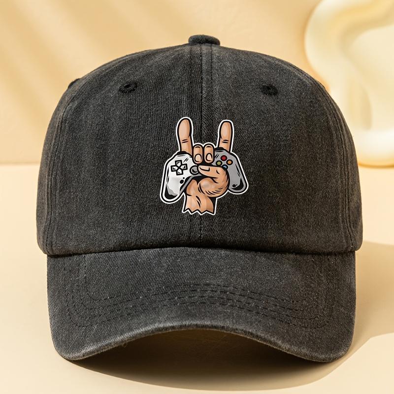 Gamer Rock On Hand Controller Baseball Cap Vintage Washed Soft Lightweight Casual Outdoor Unisex Hat
