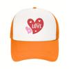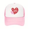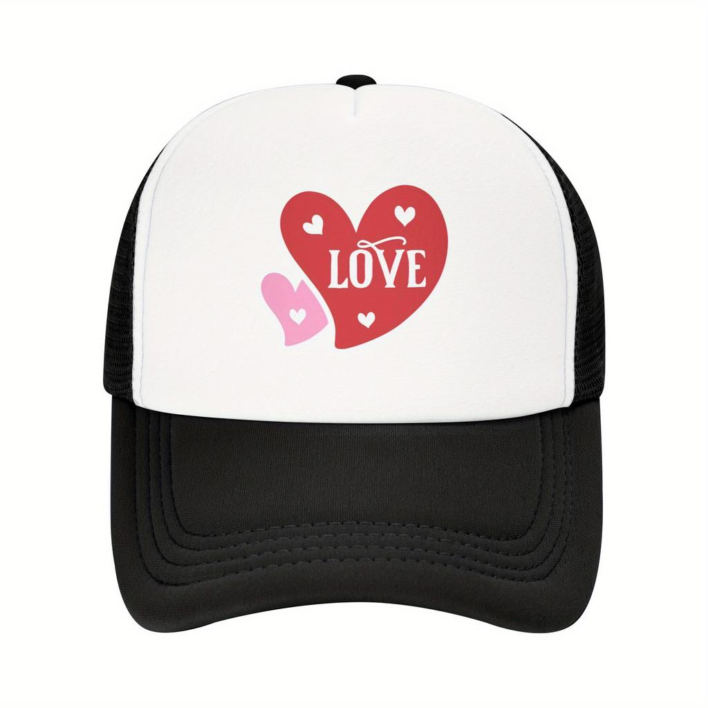 Love Heart Graphic Mesh Trucker Hat Polyester Casual Adjustable Snapback Baseball Cap for Men Women