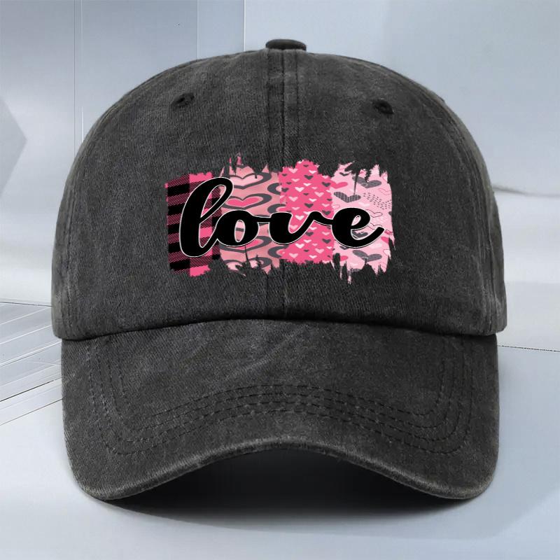 Love Heart Print Baseball Cap Polyester Distressed Casual Adjustable Outdoor Unisex Couple Cap