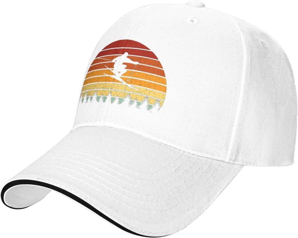 Retro Skiing Snowboard Sunset Vintage Baseball Cap Adjustable Polyester Outdoor Sports Hat Unisex