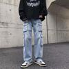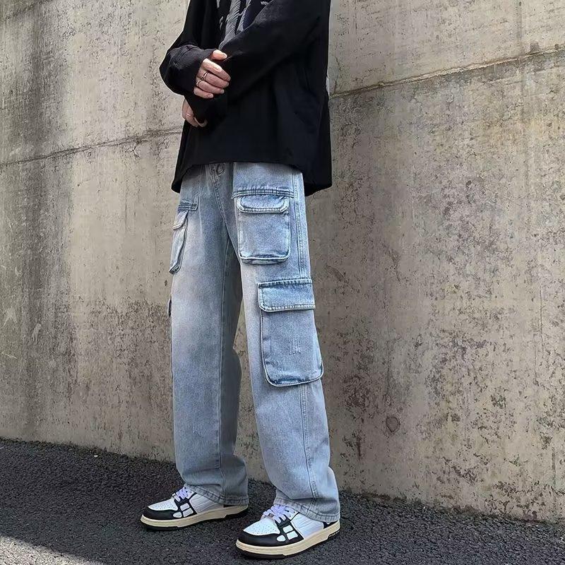 JYL Men's Cargo Jeans Multi-Pocket Hiphop Street Loose Wide-Leg Floor Denim