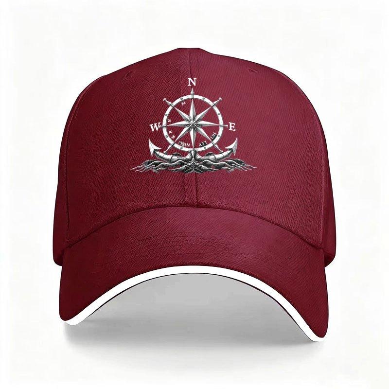 Nautical Compass Anchor Baseball Cap Vintage Sailor Polyester Adjustable Outdoor Adventure Cap