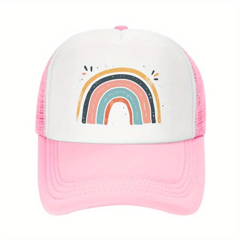 Rainbow Graphic Trucker Hat Pink Mesh Back Adjustable Baseball Cap Breathable Summer Outdoor Sports Cap