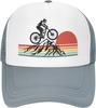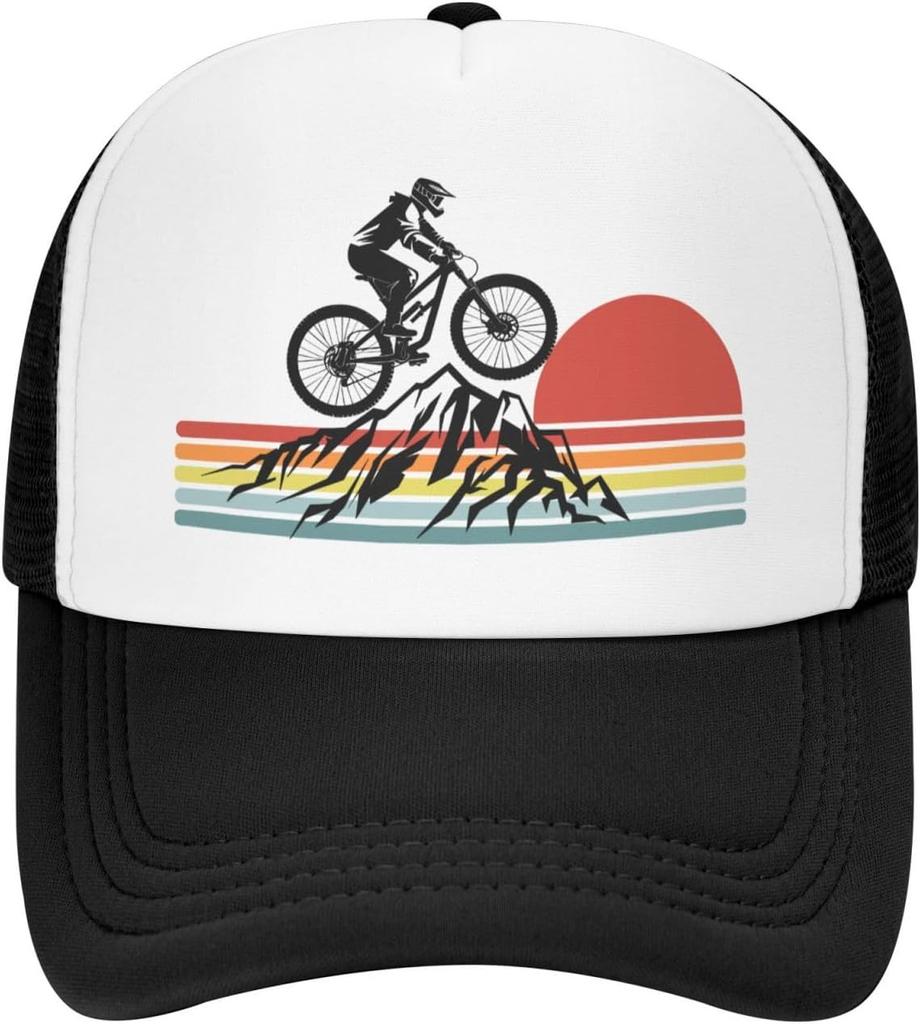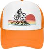 Mountain Biking Sunset Graphic Trucker Hat Polyester Mesh Adjustable Outdoor Cycling Baseball Cap