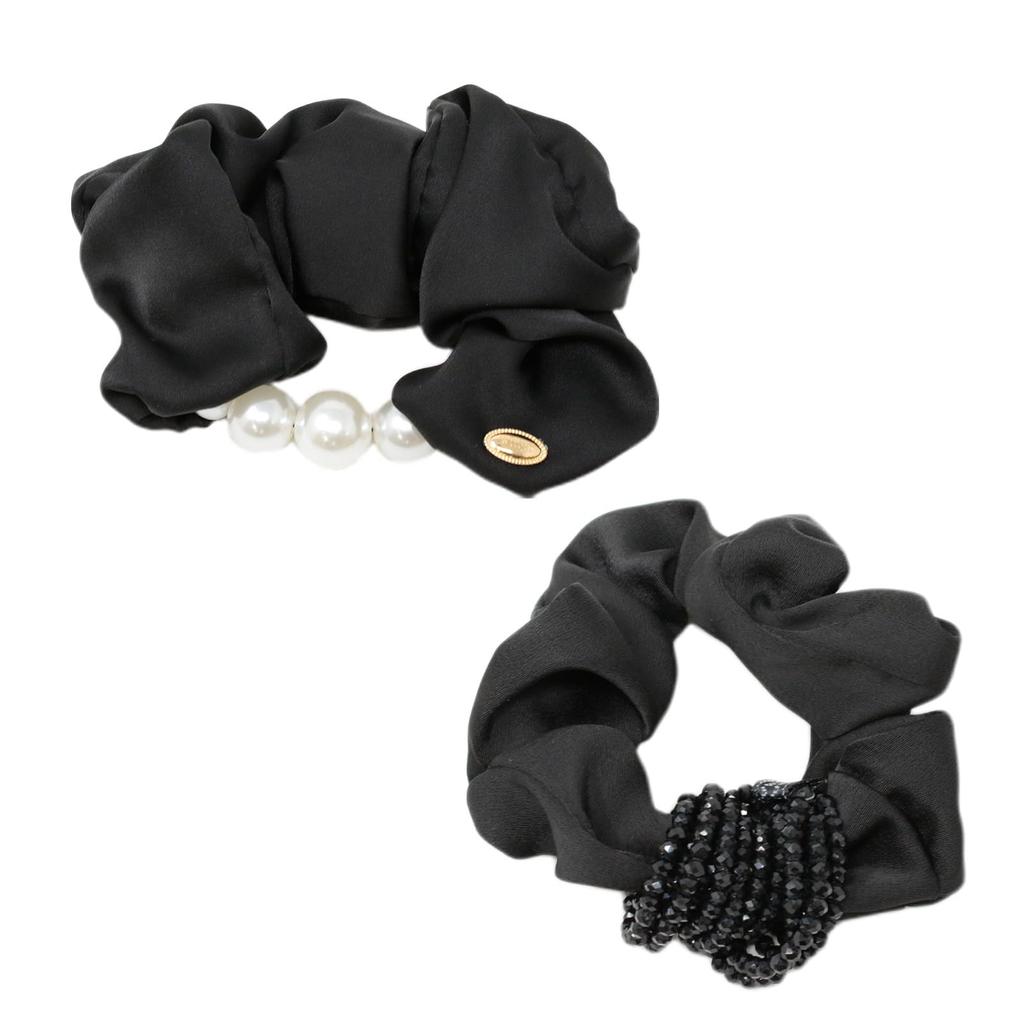 [Cute and sophisticated with pearls and beads] This set of two scrunchies features two different designs: one with a row of large pearls and the other with sparkling, intricate beaded decorations. They work as accents to enhance your femininity. The pearl scrunchie has an elegant sheen, while the bead scrunchie gives off a three-dimensional, delicate impression. Experience the charm of the decorative design, which adds just the right amount of glamour to a sophisticated woman's hairstyle.
