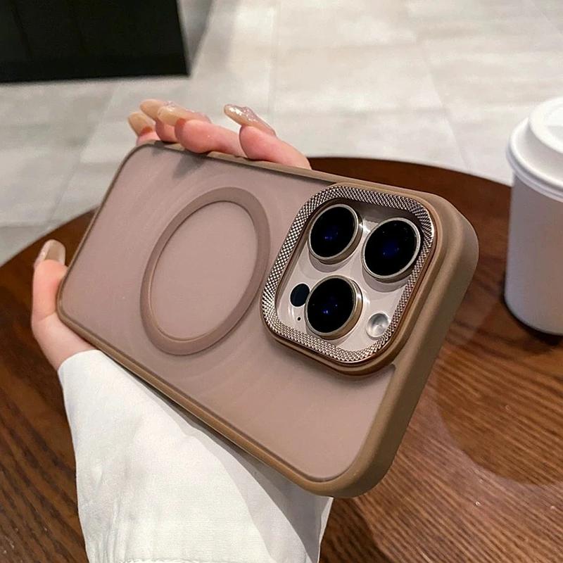 Luxury Matte Magsafe Wireless Charge Phone Case For iPhone 14 13 12 11 15 16 Pro Max Plus Soft Magnetic Bumper Protection Cover