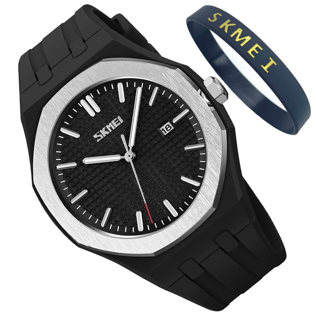 SKMEI Men's Watch, Simple Silicone, Stylish Casual Brand Watch: We offer a wide range of fashionable watches for men. This watch features a silicone date display and luminous luxury. It is crafted with 100% solid mineral, high-strength glass and a fashionable large face design. As a luxury watch at an affordable price, it has been highly praised and sought after by many customers.