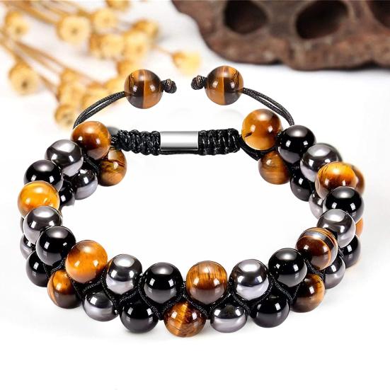 Features: Adjustable, Double Layer, Faux Tiger Eye Design