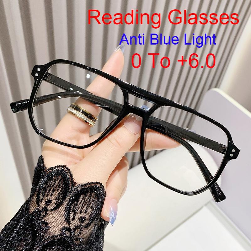 Luxury Square Frame Reading Glasses Anti Blue Light Computer Eyewear for Women Men Fashion Presbyopia Glasses Double Bridge