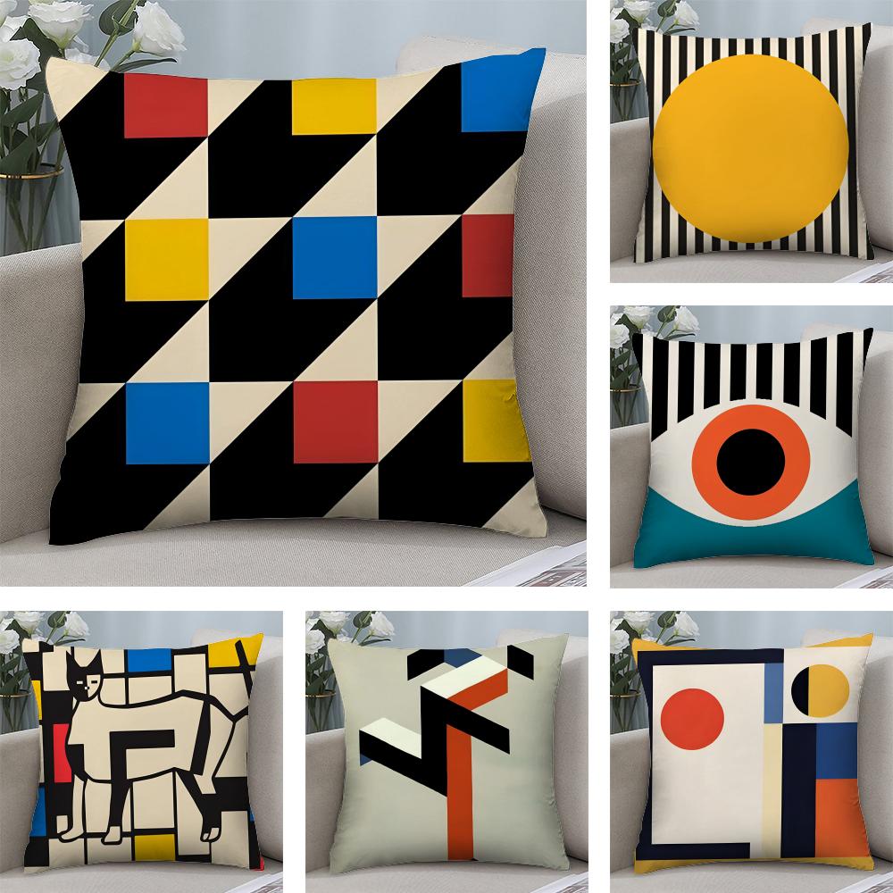 Abstract B-Bauhaus Geometry Cushion Cover Soft Plush Fabric Double-Sided Printed Sofa Cushion Cover for All Seasons Home Decor