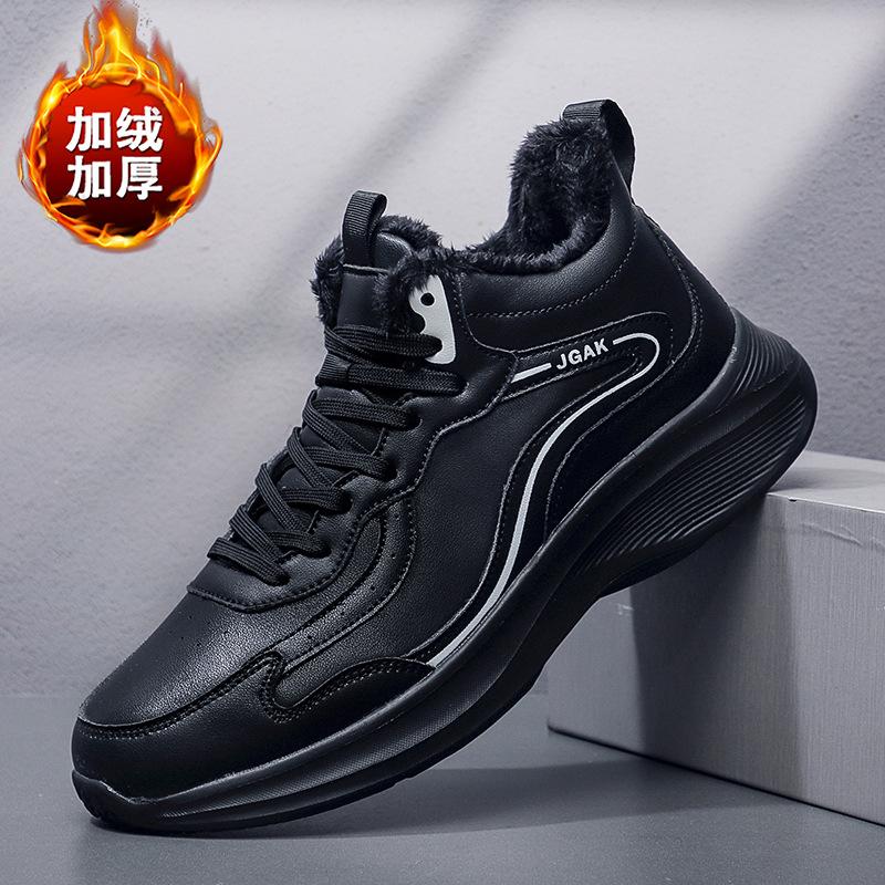 Extra Large Size Velvet Sneakers Leather Surface Warm Winter Shoes Soft Sole Comfortable Winter Running Shoes Cotton Shoes
