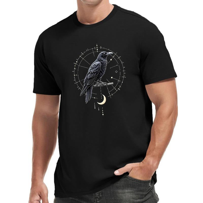 European Size Men'S Short-Sleeve T-Shirt Featuring a Crow And Celestial Design for Summer.
