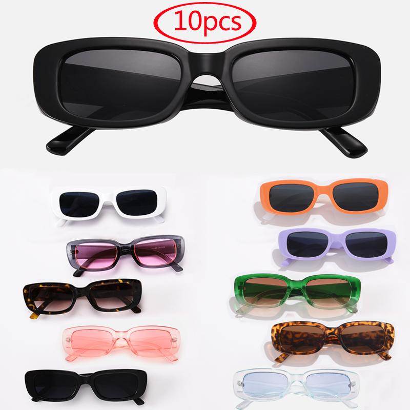 10pcs Vintage Rectangle Sunglasses Women Designer Square Black Sun Glasses UV400 Gradient Eyewear Female Shades