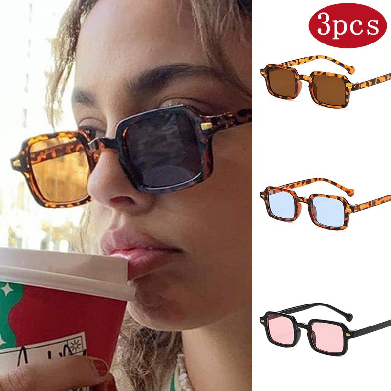 3set Fashion Rivets Square Sunglasses Women Vintage Gradient Shades Men Leopard Blue UV400 Sun Glasses
