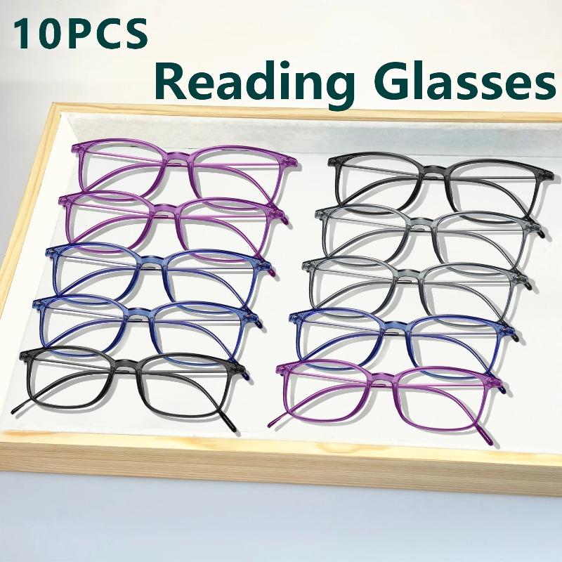 10pcs Square Reading Glasses Women Men Black Blue Grey Purple Anti Blue Light Polycarbonate Lens
