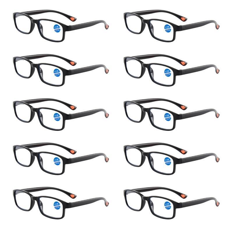 10PCS Flexible Anti Blue Light Reading Glasses +100 To +400 Square Frame Eyewear for Men Women Fashion