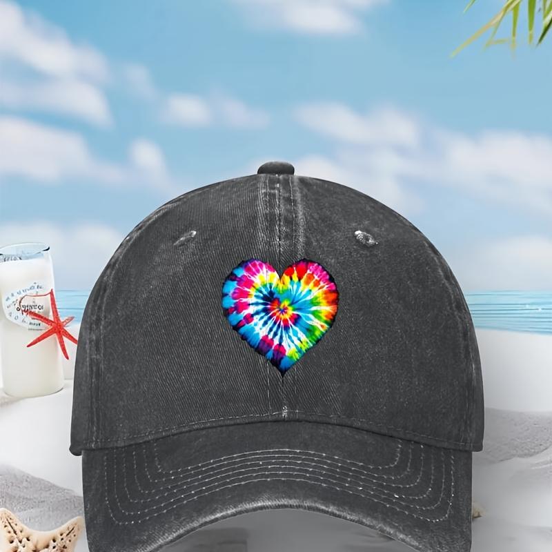 TieDye Heart Baseball Cap Distressed Denim Casual Summer Unisex Adult Sun Protection Hat