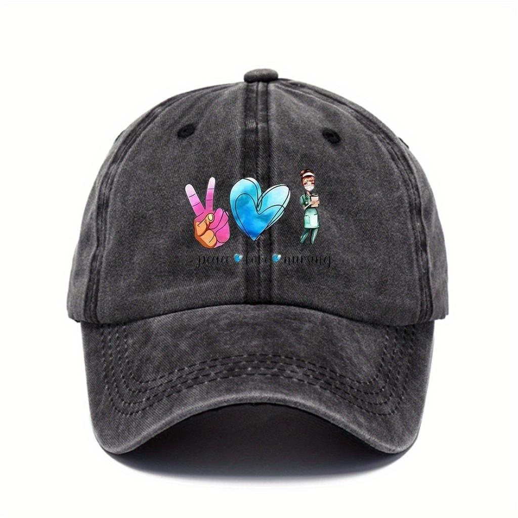 Peace Love Nursing Graphic Print Washed Baseball Cap Vintage Distressed Adjustable Sun Hat Unisex