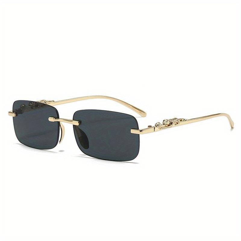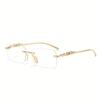 Metal Frameless Glasses with Cheetah Decoration Cut Edge Sunglasses Colored Lenses Retro Style