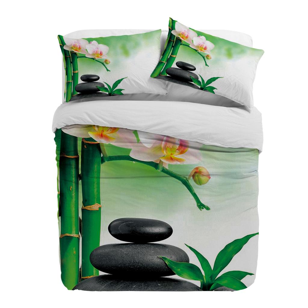 Zen Stones Orchids Flower Green Bamboo Duvet Cover With Pillow Case Custom 3pcs Bedding Set Quilt Cover Double Bed Home Textile