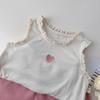 Adorable Korean Style Summer Two Piece Set For Girls Featuring Heart Embroidery And Soft Cotton Fabric