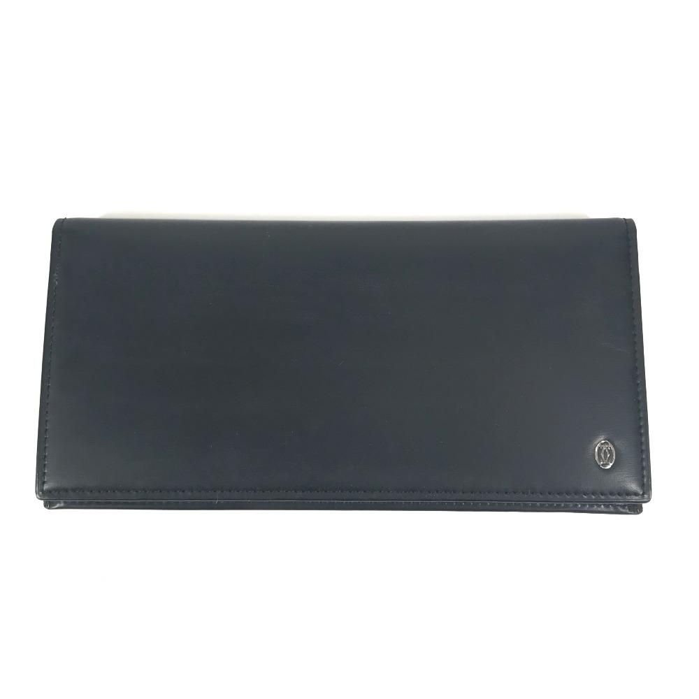 Cartier Must De Line Small Items Wallet Bifold Long Wallet Leather Black