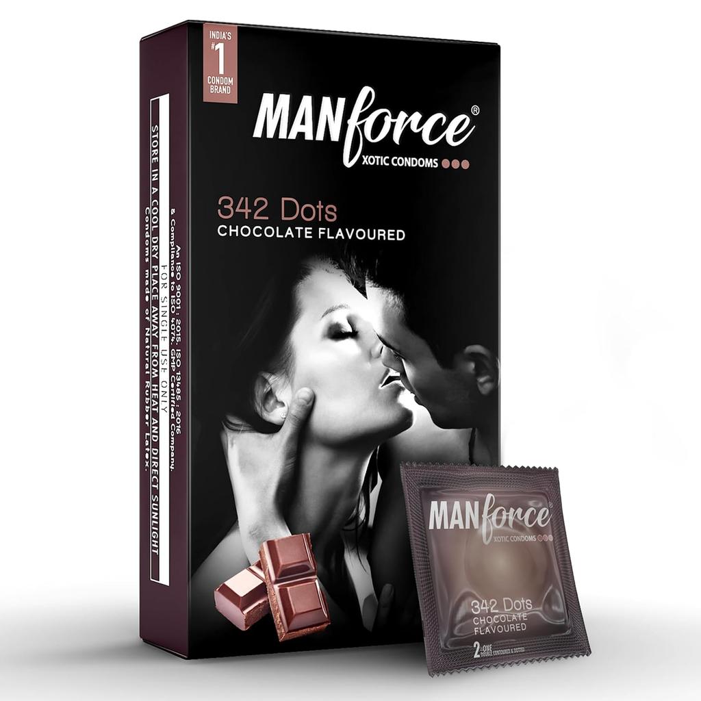 Manforce Xotic Chocolate Flavoured Condoms for Men | 10 Pcs | Dotted, Contoured, & Lubricated Latex Condoms | For Enhanced Pleasure of Both