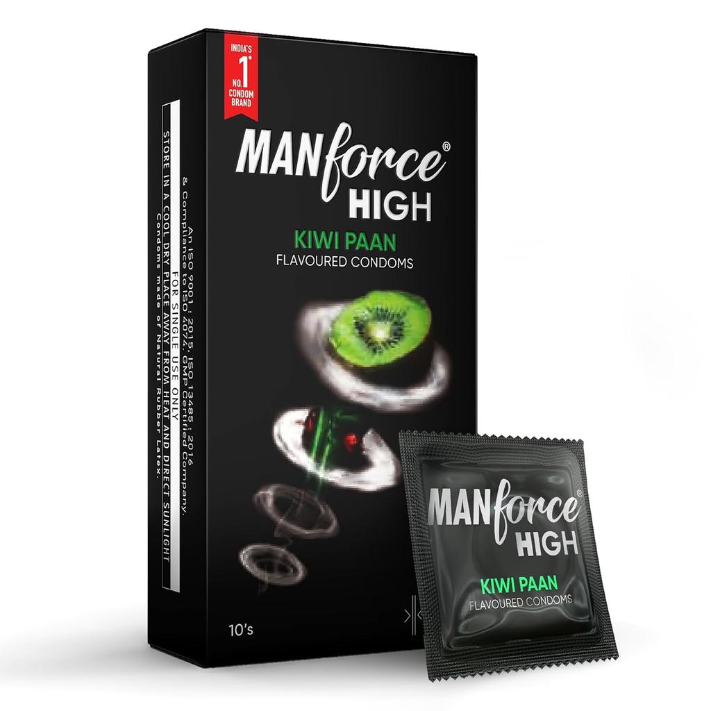 Manforce High Kiwi Paan Flavoured Condoms for Men | 10 Pcs | Ultra Thin Condom | Lubricated Latex Condoms | India’s No. 1* Condom Brand for Safe Sex