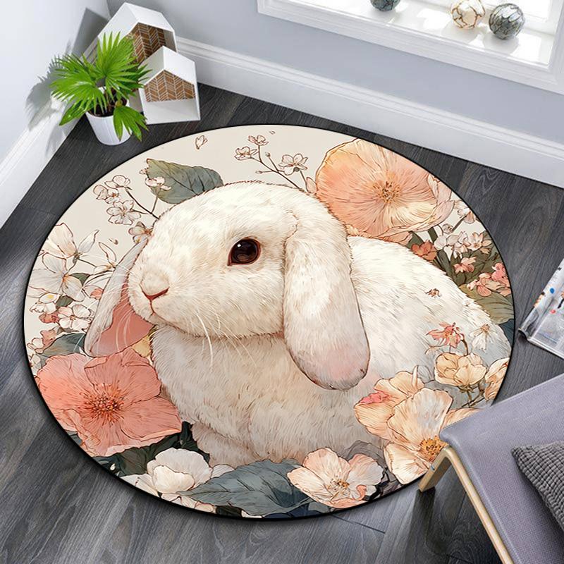 Bunny Round Area Rug,Carpet Rug for Living Room Bedroom Sofa Playroom Decor,Non-slip Floor Mat