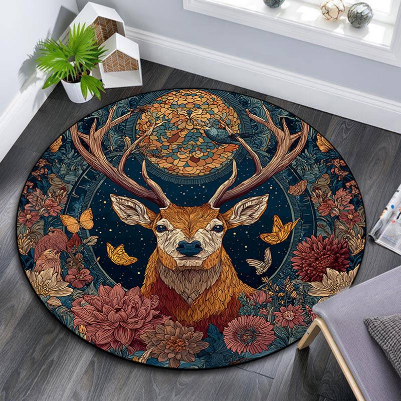 Deer Round Area Rug,Carpet Rug for Living Room Bedroom Sofa Playroom Decor,Non-slip Floor Mat