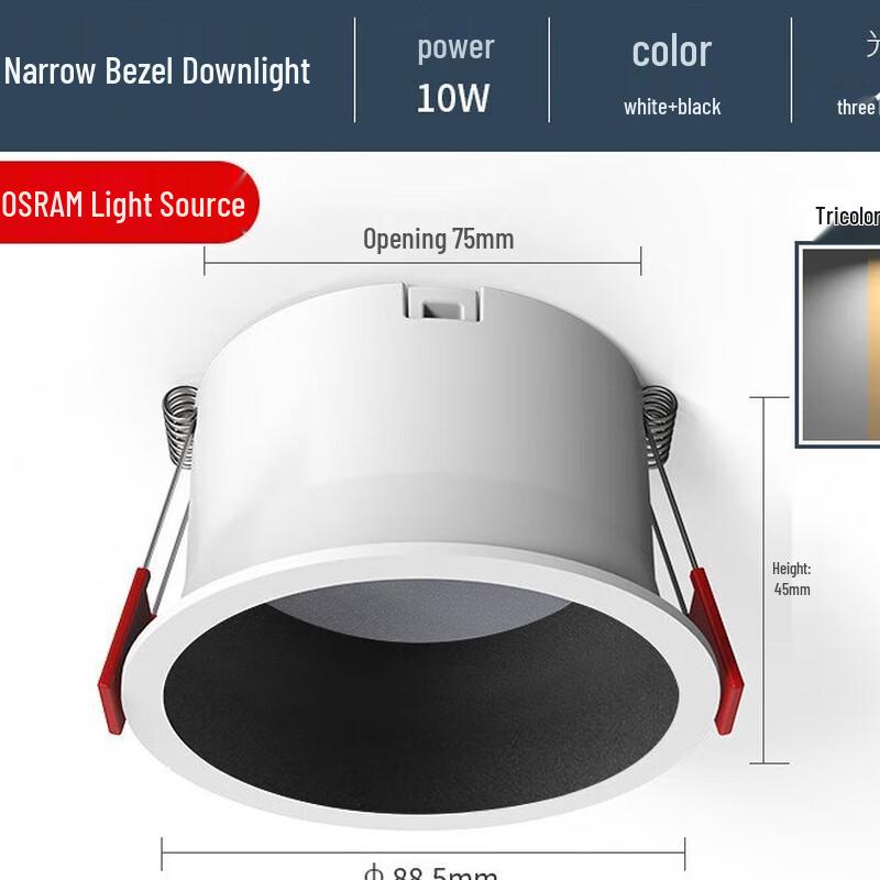 ModelElegant White Black Cup, 10W, 3-Color Dimming, 75mm Opening