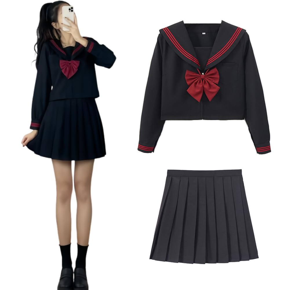 Limspace Sailor Authentic High School Girl Cosplay Long Sleeve and Short Sailor Bow JK School Pleated JK Class Kansai Academy British Junior High
