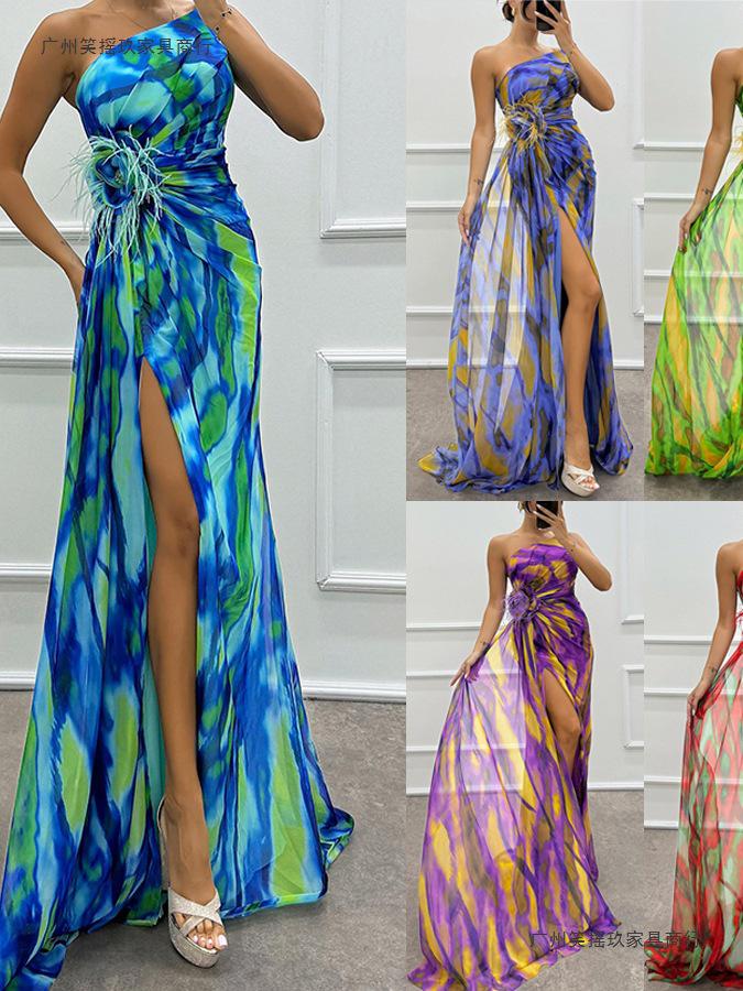 2026 European Chiffon Printed Split Long Casual Party Dress for Women