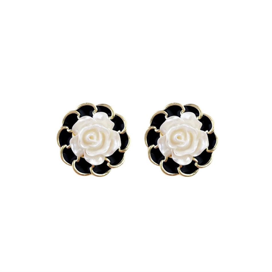 Korean Unique Camellia Black White Stud Earrings for Women Piercing Ear Jewelry Pendientes Earring