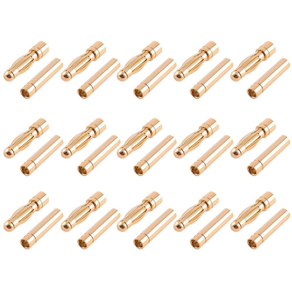 GTIWUNG 15 Pairs 4mm Gold Bullet RC Lipo Banana Connector Plugs