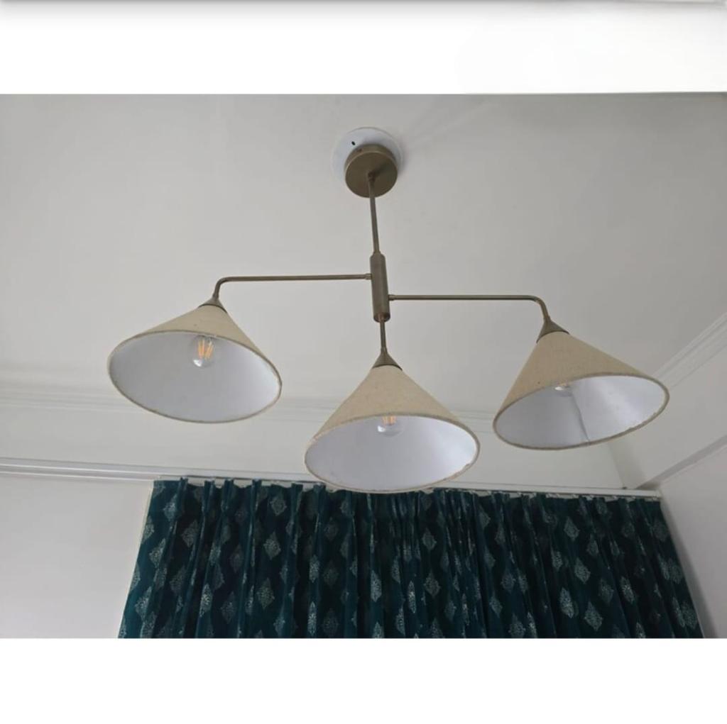 Raw Brass Pendant Light Mid Century Modern 3-Light Ceiling Pendant Fabric Shade
