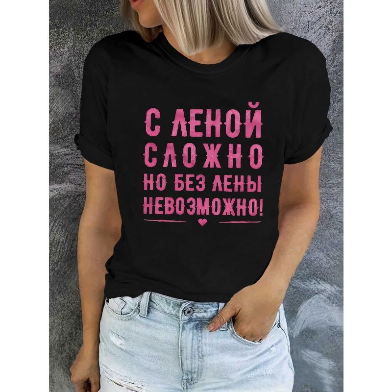 Women's Russian Letter Print T-Shirt Short Sleeve Crew Neck Casual Medium Stretch Spring Summer Top