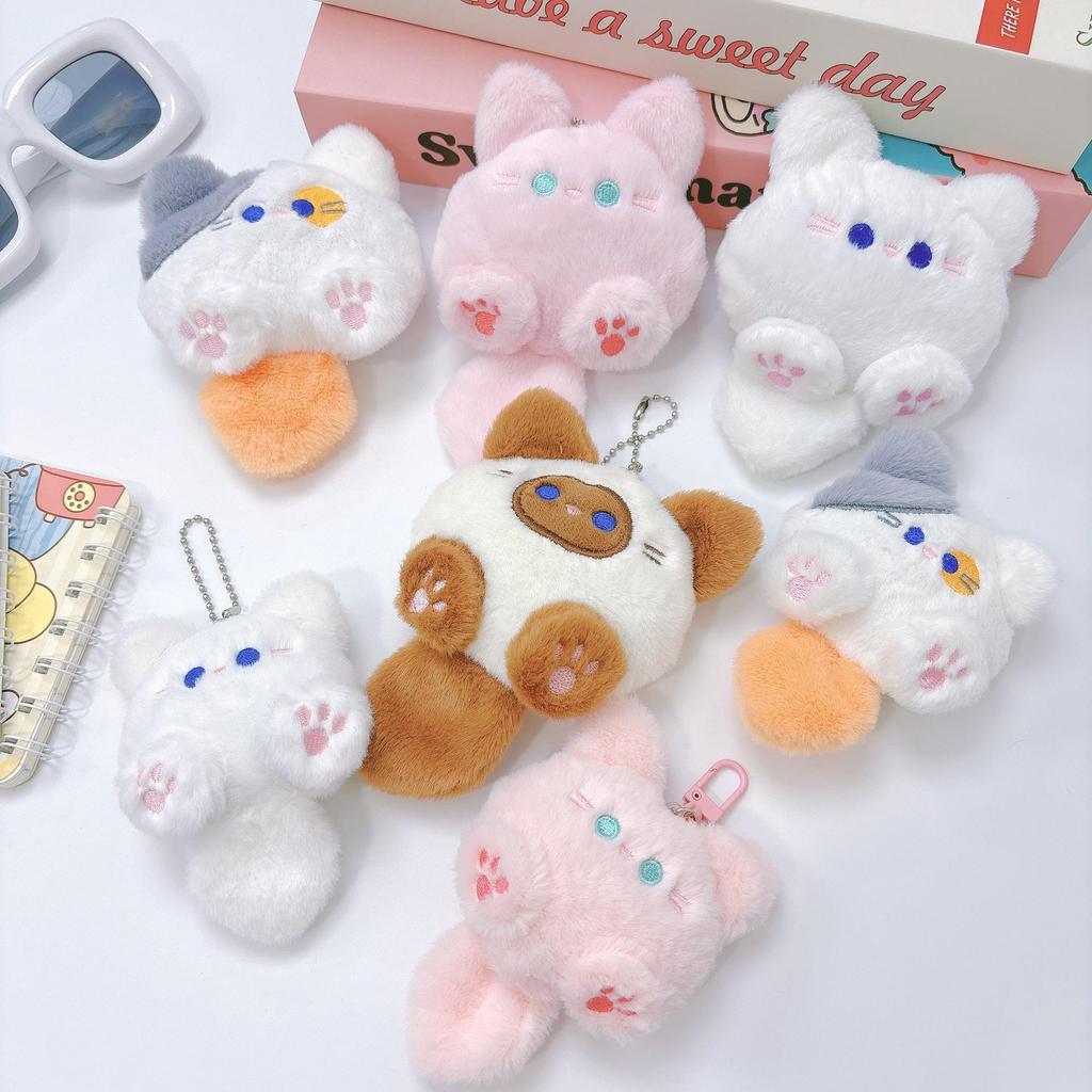 Squeaky Cat Plush Keychain Brooch: Cute Cartoon Doll Accessory