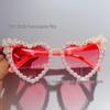 Crystal Heart Bride Sunglasses with Rhinestones & Pearls - Women's Bachelorette Party Accessory