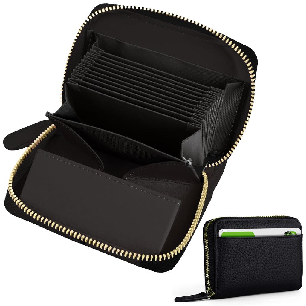 COCA-DG Mini Wallet for Men and Women, Bifold Wallet with Large Capacity, Accordion-Style Card Case, Box-Shaped Coin Purse, YKK Zipper, Cowhide