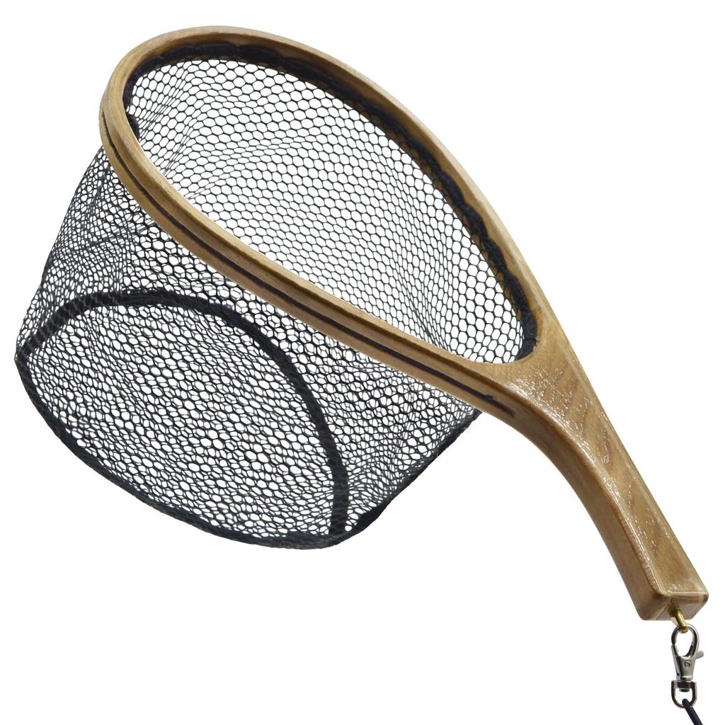 CHEUNG WIN Landing Net, Mountain Stream, Rubber Net, Dip Net, Lightweight, Wooden, Curved Handle, for Fly Fishing, Kayaks, Stream Fishing, Trout Fishi