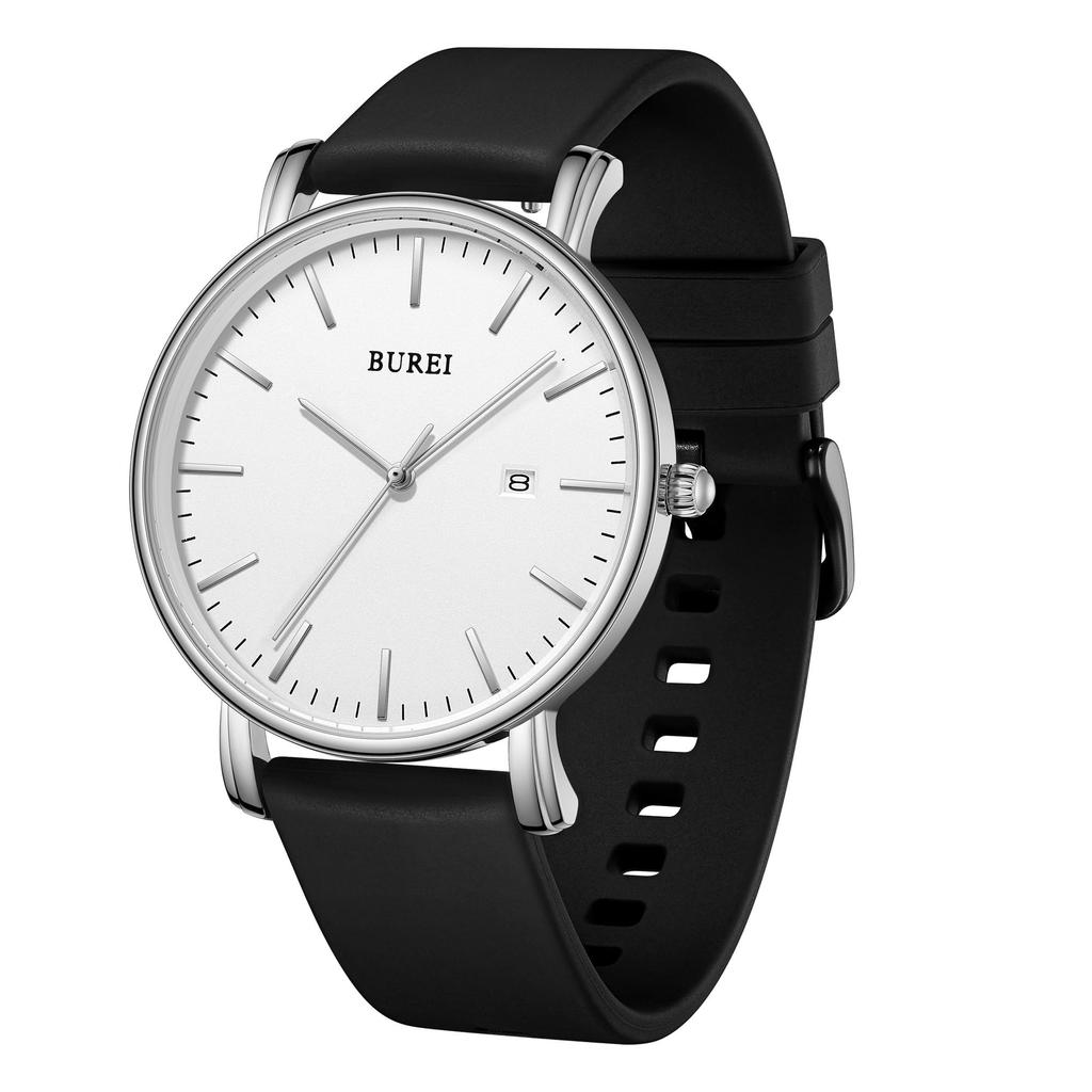 BUREI Men's Watch, Simple Analog, Waterproof, Quartz Movement, Date Display, Lightweight, Stylish, Business, Popular Brand, Black Silica Gel Strap (Wh